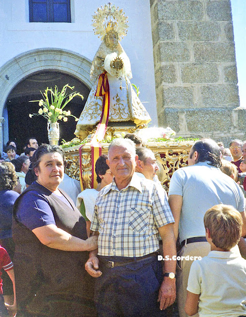 DON BENITO. Con la patrona, sea un homenaje a la memoria de la pareja protagonista de la foto un feliz día de la Velada de los años 70 en la ermita de la Virgen de las Cruces.